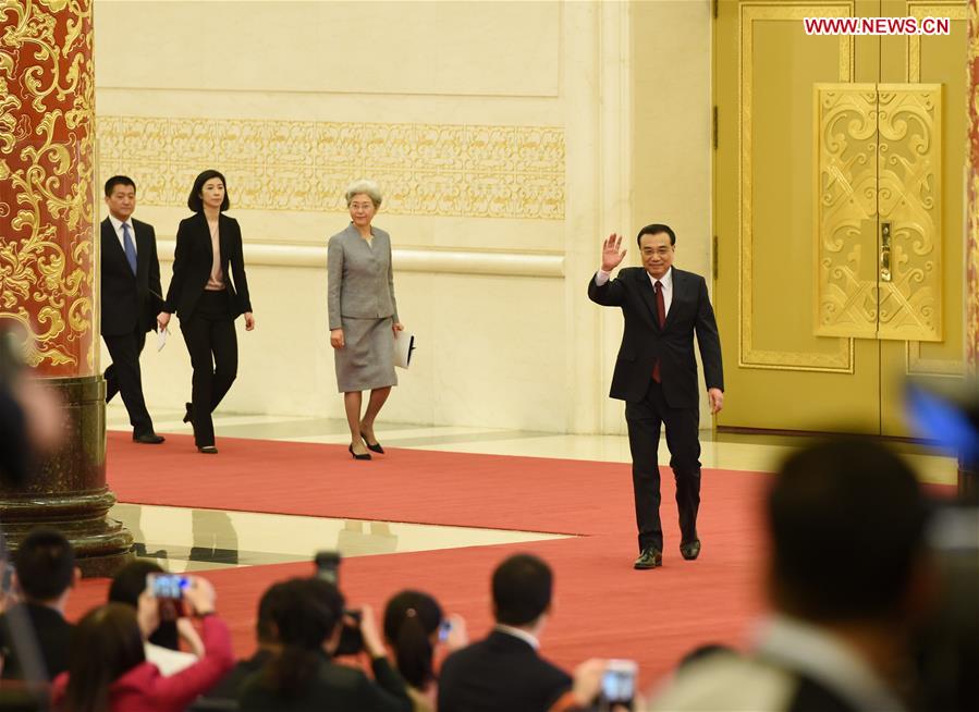 Chinese Premier Li Keqiangarrives for his press conference after the closing meeting of the fourth session of China's 12th National People's Congress at the Great Hall of the People in Beijing, capital of China, March 16, 2016. (Xinhua/Wang Ye)