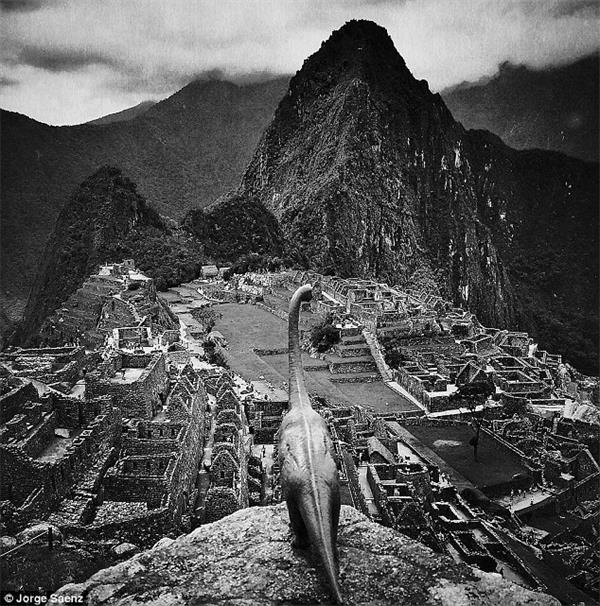 To date Saenz's dinosaurs have featured in images taken all over the world in countries including Brazil, Bolivia, Peru and Ecuador (pictured)