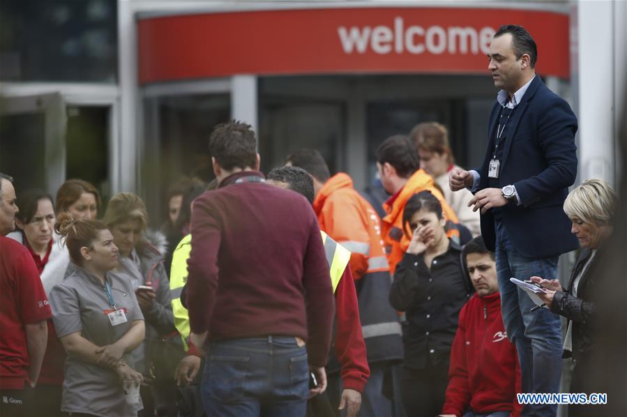Staff members of Brussels airlines wait to be evacuated from a building in Brussels, Belgium, on March 22, 2016. At least 13 people were reportedly dead after explosions at Brussels airport and a metro station on Tuesday. [Photo: Xinhua]