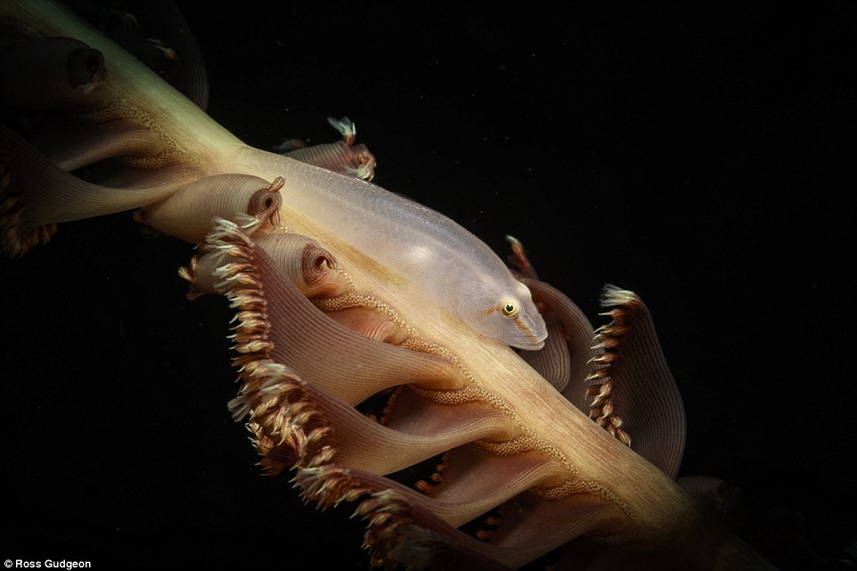 Australia's Ross Gudgeon described how perseverance paid off where this image was concerned. He said: 'Gobies on sea pens and whip corals are a very common subject for macro photography and I'm always trying to come up with a new way of shooting them. I have had many attempts to get a shot like this'
