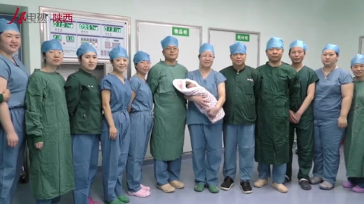 The medical group and the baby. (Snapshot/People's Daily Online)