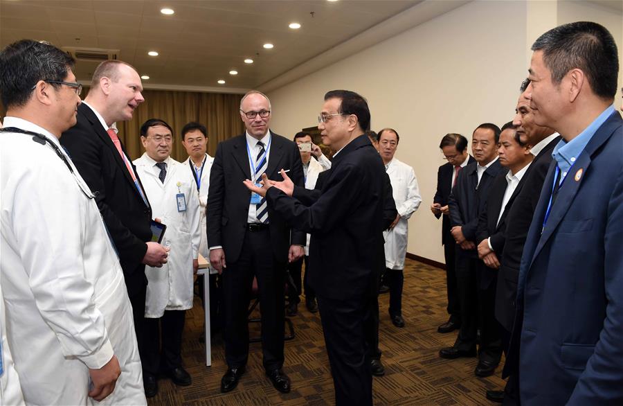 HAIKOU, March 26, 2016 -- Chinese Premier Li Keqiang (C) talks with medical experts at Boao Lecheng International Medical Tourism Pilot Zone in Boao, south China's Hainan Province, March 25, 2016. Li had an inspection tour in Sanya and Qionghai of Hainan Province from March 22 to 25, during which Li presided over the 1st Lancang-Mekong Cooperation Leaders' Meeting and attended the Boao Forum for Asia (BFA) annual conference 2016. (Xinhua/Rao Aimin)