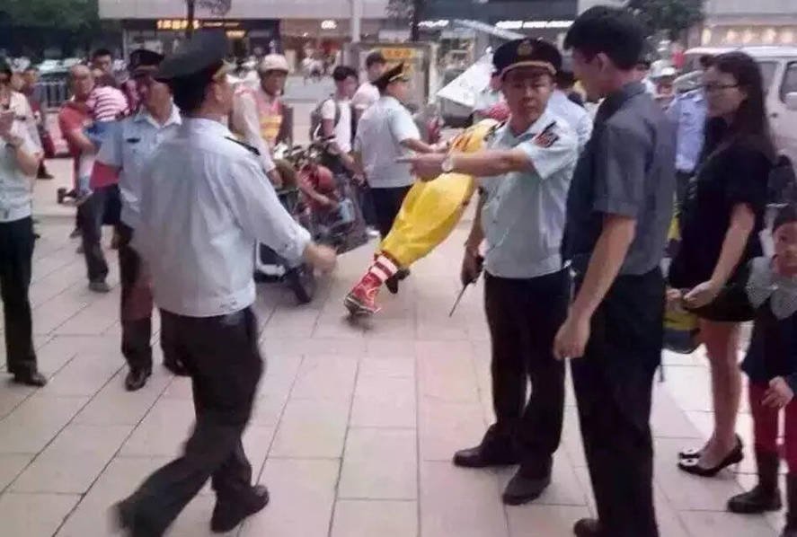 The statue was reportedly carried off from the sidewalk in front of the McDonald's on Longzhu Street, in Guangzhou's Huadu District. (Photo/ Yangcheng Evening News)