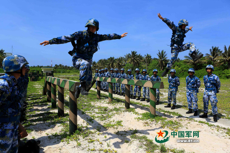 Soldiers stationed in the Xisha Islands conduct daily military training. (Photo/www.81.cn)