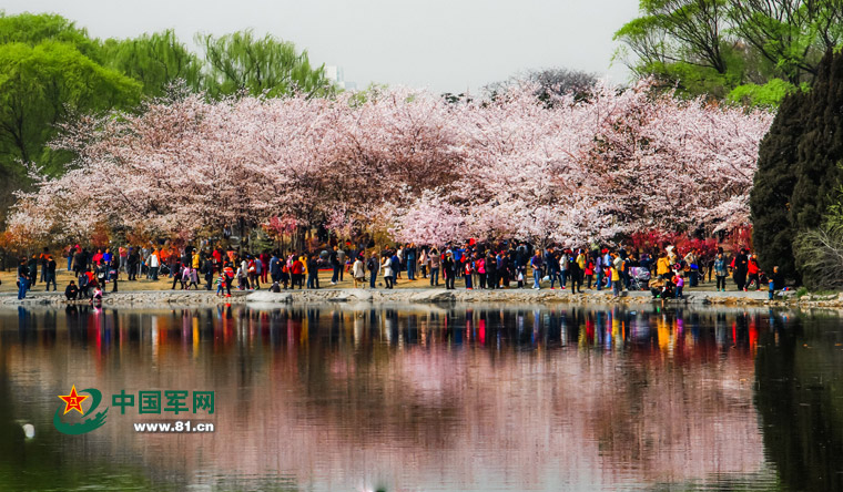 Tourists enjoy cherry blossom in Yuyuantan Park in Beijing. (Photo/www.81.cn)