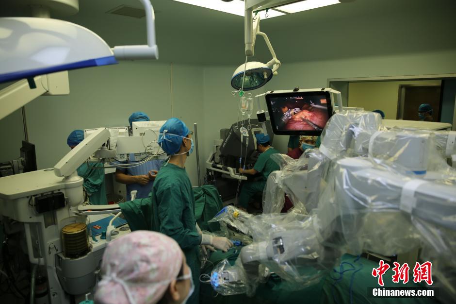 On April 12, a surgical robot was used at the First Affiliated Hospital of Guangxi Medical University to perform minimally invasive operation for two patients suffering from gastric cancer.