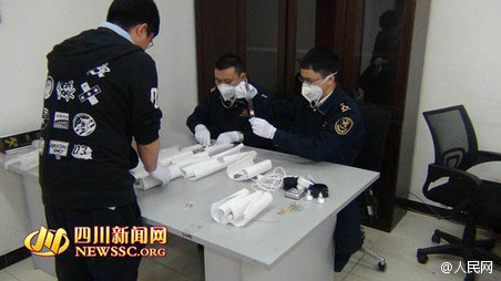 The photo shows customs authorities examing the live ants they seized in a package sent from Germany. [Photo:weibo.com]