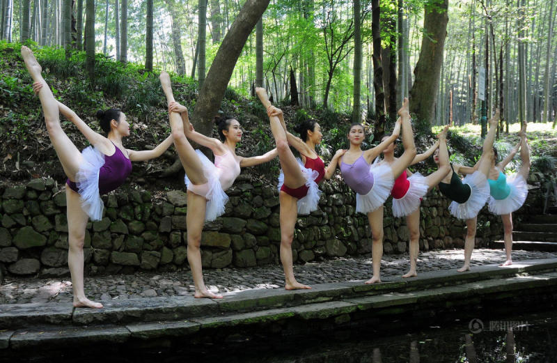 Photos taken on April 17, 2016, show a to-be pop band of girls doing split in bamboo groves in east China’s Hangzhou city. Their intimate interactions would make one blush just by one glance. Who said women cannot be heartthrobs?