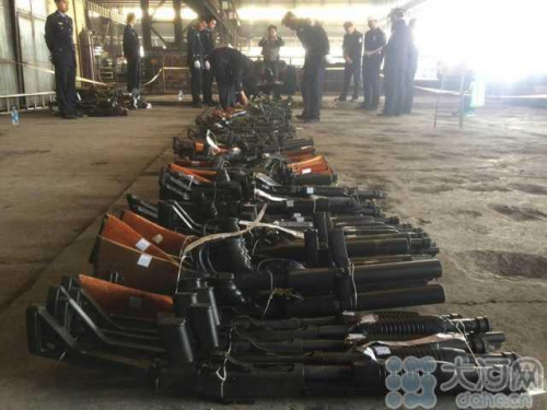 Police officers throw the 1,262 guns they confiscated into a steel furnace in Jiyuan, central China's Henan province on Monday. Most of the guns were retired guns from certain organizations.