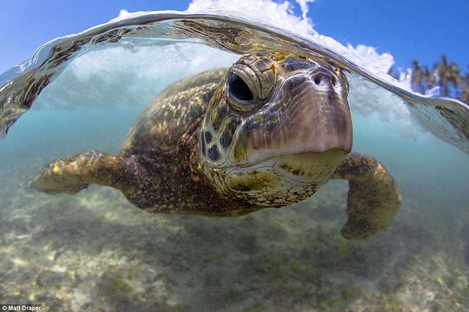 Draper's pictures are so mesmerising that his Instagram account, where they can be found, has 70,000 followers. Pictured is a green sea turtle in Oahu, Hawaii