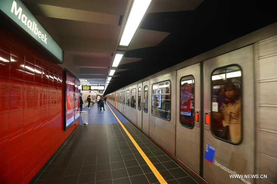 BRUSSELS, April 25, 2016 -- A train arrives at the Maalbeek metro station on its reopening day after being closed since the 22 March attacks in Brussels, Belgium, on April 25, 2016. (Xinhua/Gong Bing)