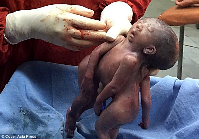 The tragic birth is similar to one in 2014 when a baby with two heads was born to a mother in India where the infants died after 20 days.