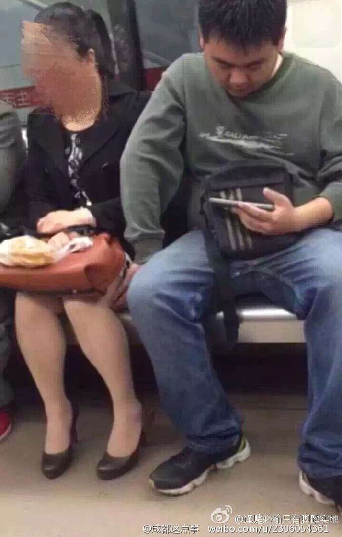 A photo was uploaded online recently showing a man placed his hand on the thigh of a woman sitting next to her reportedly on subway Line 2 of Chengdu city, southwest China’s Sichuan province. The one who uploaded the photo said that the woman was apparently embarrassed. The incident lasted until an angry onlooker suggested swapping seats with the victim. The woman readily accepted the offer, only then did the incident end.