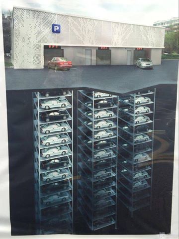 The three piles of 19 stories extend underground, and will be able to maximize parking space to accommodate 114 vehicles. It is also very efficient: it will only take 50 seconds to park a vehicle, and 85 seconds to retrieve.