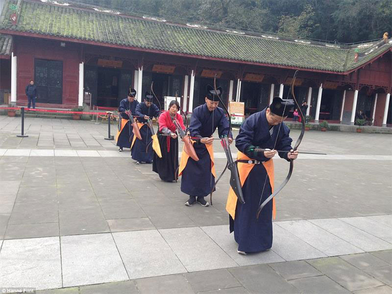 Centuries old expertise: An archery show of excellence was performed for the guests of the temple