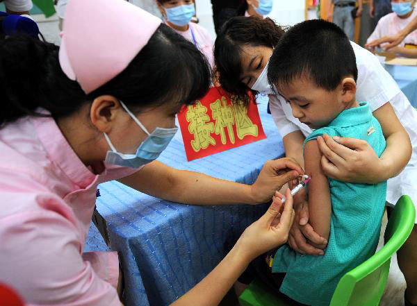 A child receives measles vaccine at a vaccination site in Nanjing, east China's Jiangsu Province, Sept. 11, 2010. [File Photo: Xinhua]