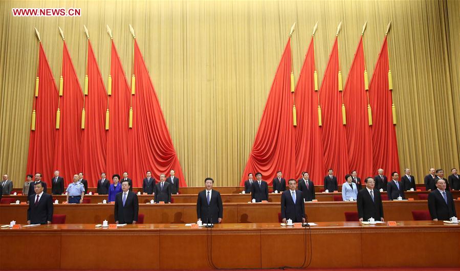 BEIJING, May 30, 2016 -- Chinese President Xi Jinping (3rd L, front), Premier Li Keqiang (3rd R, front) and senior leaders Zhang Dejiang (2nd L, front), Yu Zhengsheng (2nd R, front), Liu Yunshan (1st L, front) and Wang Qishan (1st R, front) attend an event conflating the national conference on science and technology, the biennial conference of the country's two top think tanks, the Chinese Academy of Sciences and Chinese Academy of Engineering, and the national congress of the China Association for Science and Technology, in Beijing, capital of China, May 30, 2016. (Xinhua/Pang Xinglei)