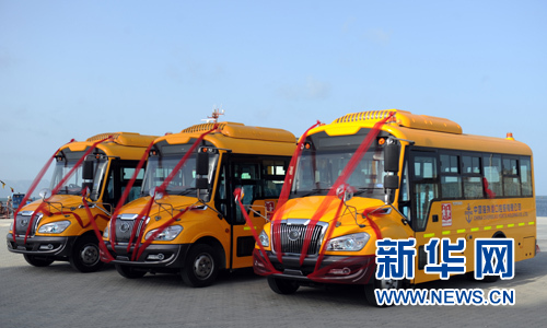 China Overseas Ports Holding Company donated three school buses to three Pakistani schools in 2014. [Photo: Xinhua]