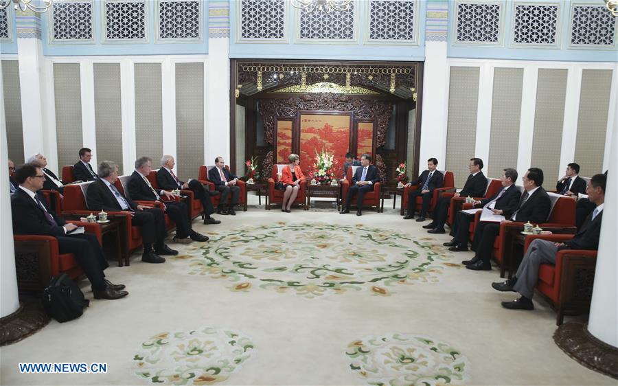 BEIJING, June 15, 2016 -- Chinese Vice Premier Wang Yang meets with members of a U.S. delegation attending the China-U.S. economic review and development dialogue in Beijing, China, June 15, 2016. (Xinhua/Yao Dawei)