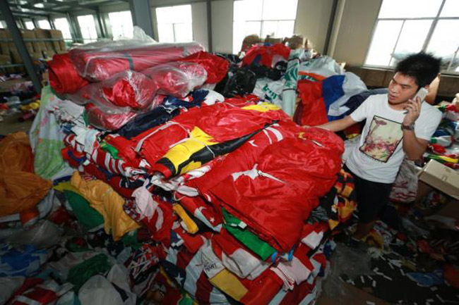 Jiang said his company, as a veteran in national flag manufacturing for international soccer events, broke a record by making 9 million flags within 13 days.