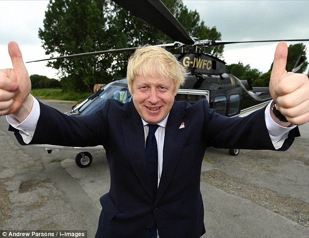 Boris Johnson gives a thumbs up as he leaves Selby, North Yorkshire, on a hectic day of campaigning