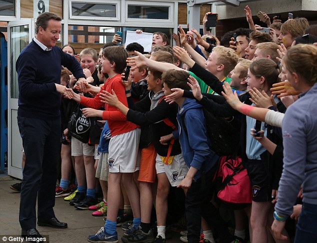 David Cameron was greeted by school children as his whistlestop tour took him to Bloxham near Banbury yesterday in his final push for votes before the referendum