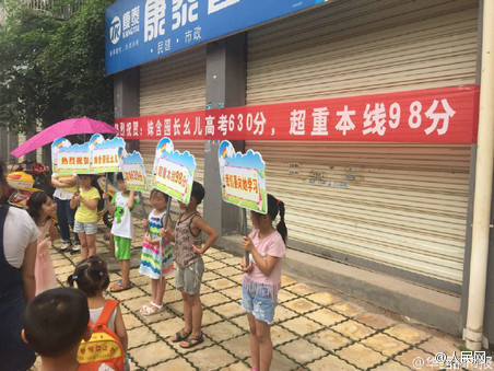 On June 23, five children stood in front of a kindergarten in Sichuan with a banner in their hand that says “Congratulations to the principal’s daughter for getting 630 in gaokao. We should learn from her. ”