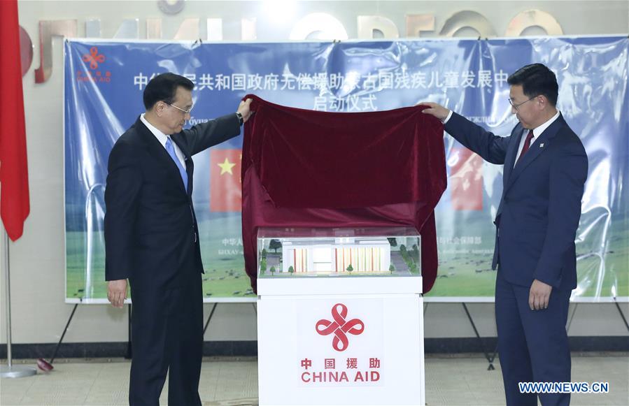 ULAN BATOR, July 14, 2016 -- Chinese Premier Li Keqiang(L) and Mongolian Prime Minister Jargaltulga Erdenebat attend the launching ceremony of a handicapped children development center aided by China, in Ulan Bator, Mongolia, July 14, 2016. (Xinhua/Pang Xinglei)