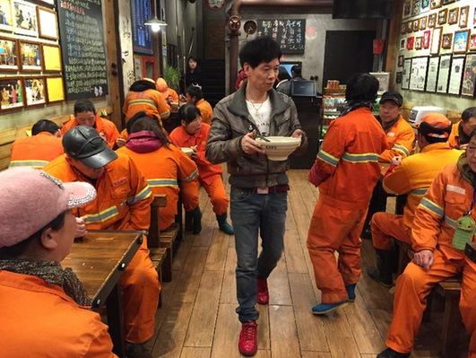 Zhang told thepaper.cn that he hopes to help the workers feel refreshed by offering them a complimentary bowl of soup.