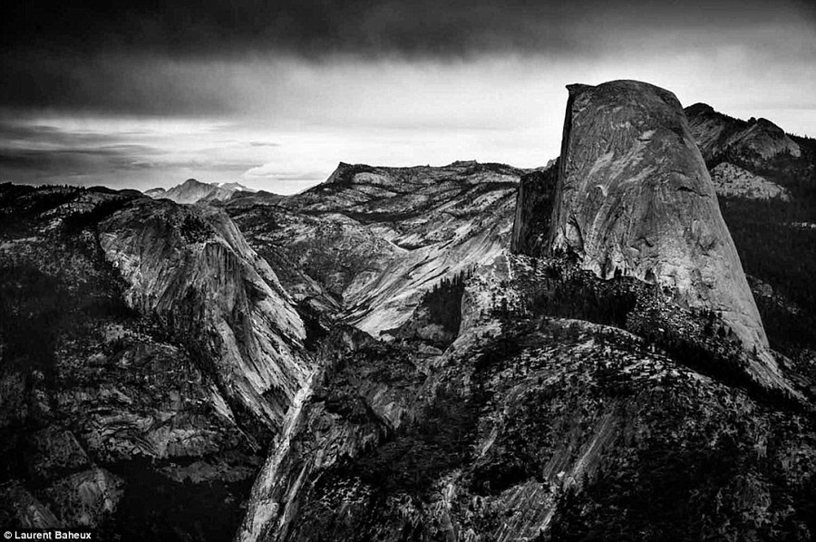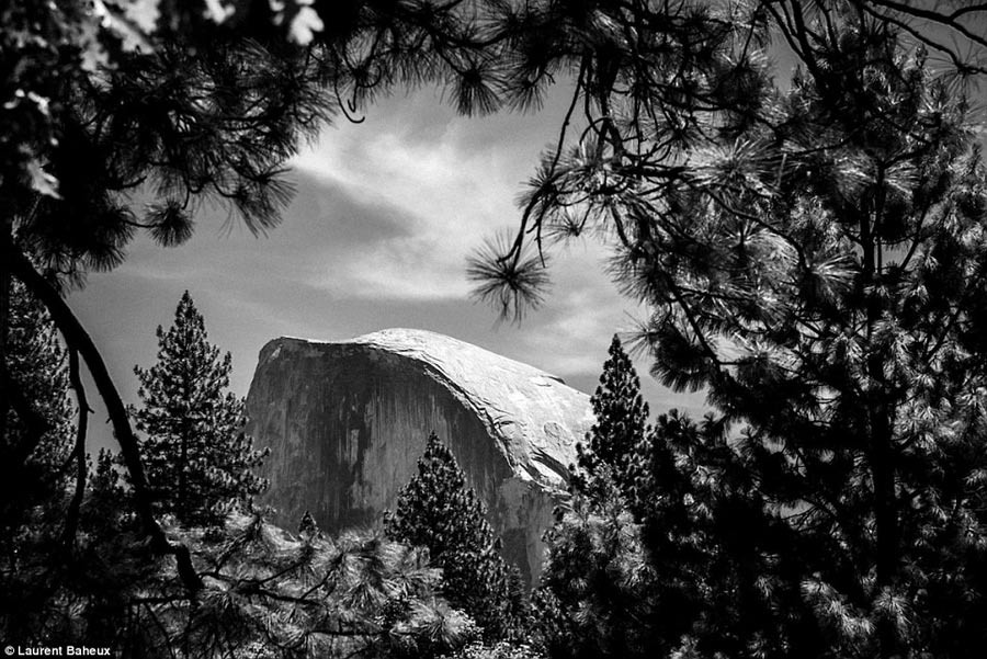 Baheux retraced the steps of famed photographer Ansel Adams (pictured: Half Dome at Yosemite National Park)