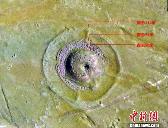 Aerial image of sun altar ruins found in Xinjiang. (Photo/CNS)