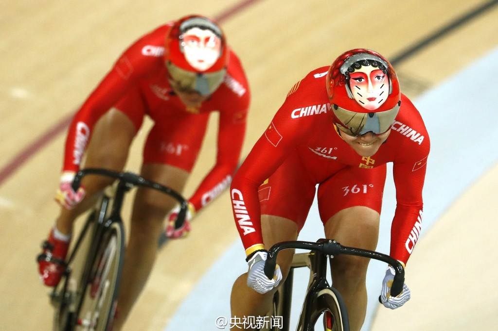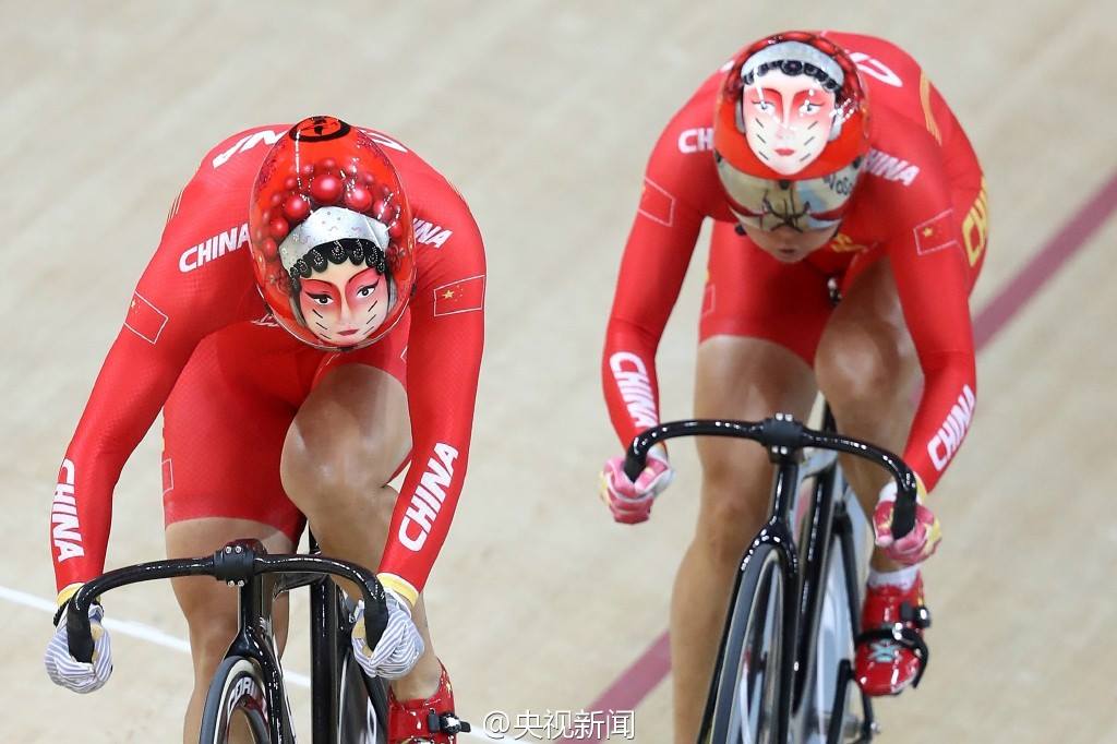 ??Rio2016? Sideline: Wonder what's on ?China?'s new gold medalists' helmets? They're Peking Opera facial mask of Hua Mulan and Mu Guiying- both ancient Chinese war heroines. The former is known in the west as the protagonist of a Disney movie named ?Mulan?.