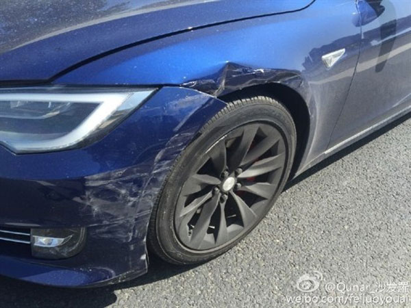 The file photo shows a Tesla vehicle which crashed in Beijing. [Photo: weibo.com]