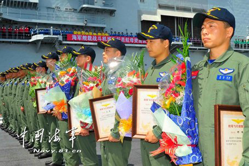 A new batch of pilots receive aircraft carrier flight certification recently.(Photo/Navy.81.cn)