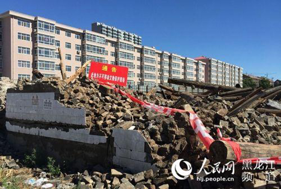 In the early morning of June 25, a total of seven immovable relics were razed to the ground in a shanty town located northeast of Shuangcheng. On the site was a red notice board with the words, "This is a protection site for immovable relics."