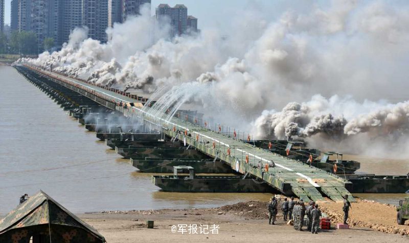 PLA builds 1,150-meter pontoon across Yangtze in 26 minutes!
