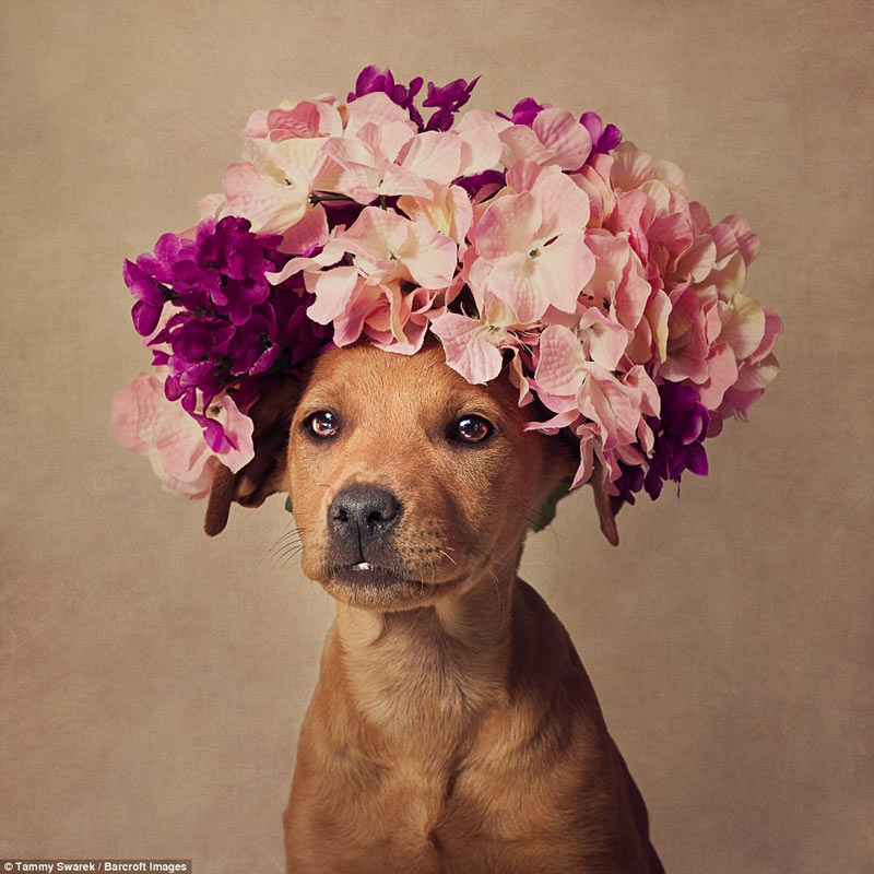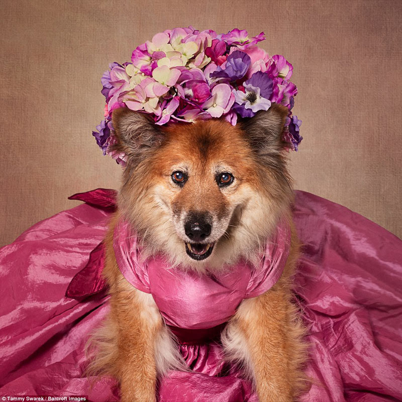 Photographer Tammy Swarek, from Arkansas, came up with the idea of dressing up rescue dogs to draw attention to their stories and help find new owners.