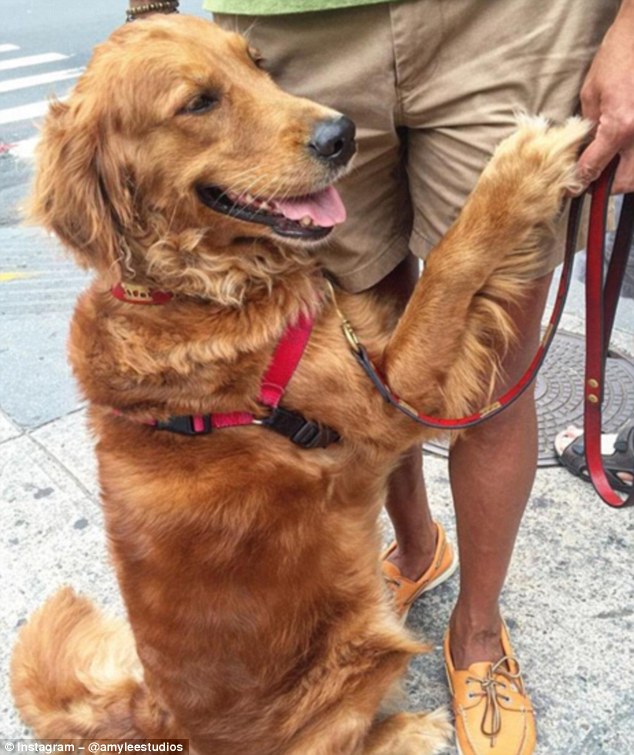 There are scores of pictures of the pet pooch on her hind legs, with her front paws clasped around a man or woman's thighs, that are posted by fans on Instagram.