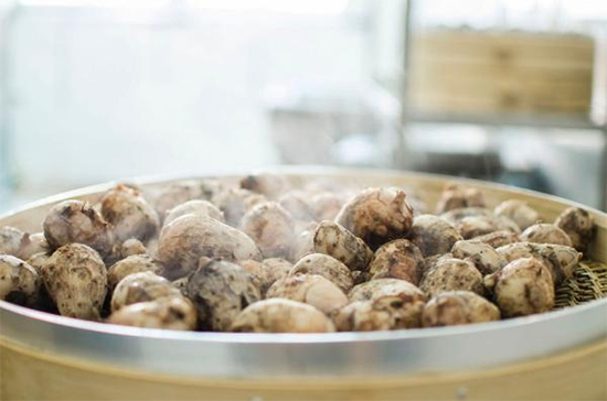The Red Army meals contain food such as pumpkin soup, steamed sweet potatoes and taro. The cups and bowls also feature slogans like, "Serve the people whole-heartedly!" and, "The Red Army never feared the difficulties of the Long March."