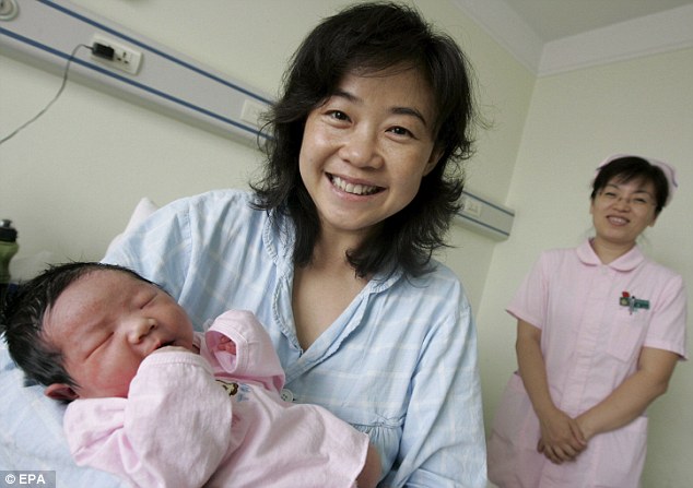 English identities: All Chinese babies are given a traditional Chinese name at birth (Pictured: A file image of a mother having given birth in Beijing in 2008)