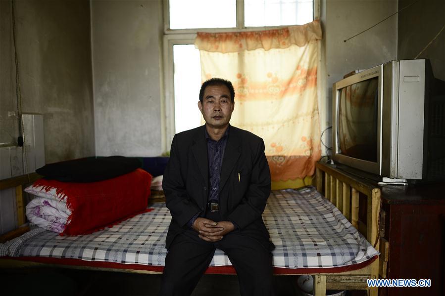 The 56-year-old teacher Hua Fulin, the only teacher of the small school in Kunlun Village, sits on his dormitory bed, in Kunlun Village of Haidong City, northwest China's Qinghai Province, Sept. 8, 2016. About 50 kilometers away from the nearest county, the Kunlun small school now has only eight students and one teacher. (Xinhua/Zhang Hongxiang)