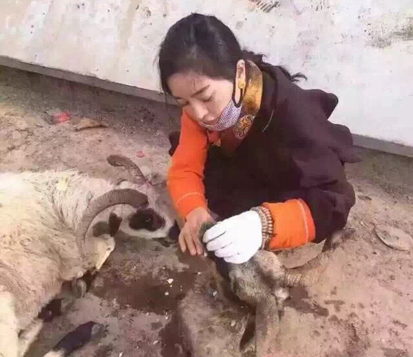 A Tibetan woman helps raise 5,109,600 yuan to buy 6,387 goats from various slaughterhouses.(Photo from Internet)
