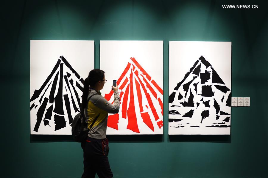A visitor views the exhibits during a preview of the Silk Road (Dunhuang) International Culture Expo in Dunhuang, northwest China's Gansu Province, Sept. 12, 2016. The expo will be held in Dunhuang from Sept. 20 to Oct. 10. (Xinhua/Chen Bin)