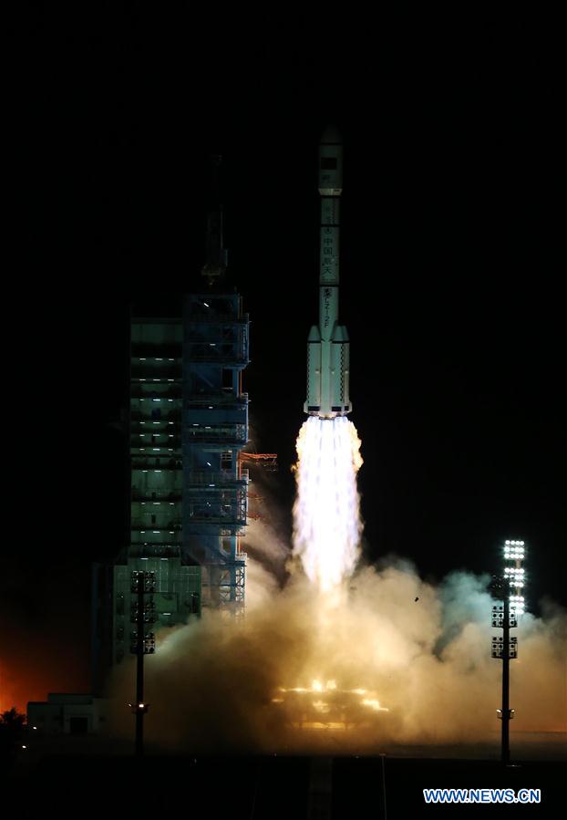 China's space lab Tiangong-2 roars into the air on the back of a Long March-2F rocket from the Jiuquan Satellite Launch Center in northwest China, Sept. 15, 2016. (Xinhua/Ju Zhenhua)