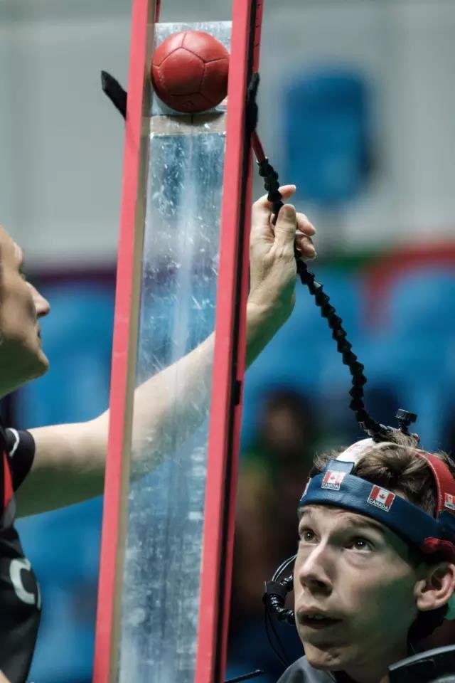 A Paralympian participates in the Boccia event at the Rio Paralympic Games. Boccia is practiced by people with cerebral palsy or related neurological conditions. Paralympic players wear an electronic device on their heads, which helps them judge the position of the target. A track is provided to help them throw the ball. For the players, the game is both a method of recovery and a spiritual reward.