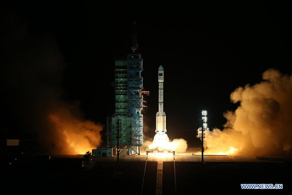 China on Spet.15 launches space lab Tiangong-2 into space, paving the way for a permanent space station the country plans to build around 2022.(Photo/Xinhua)