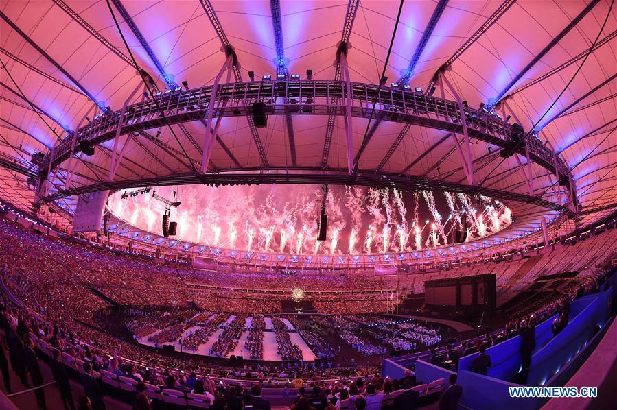 Photo taken on Sept. 18, 2016 shows the fireworks of the closing ceremony of Rio 2016 Paralympic Games at Maracana Stadium in Rio de Janeiro, Brazil. [Photo: Xinhua]