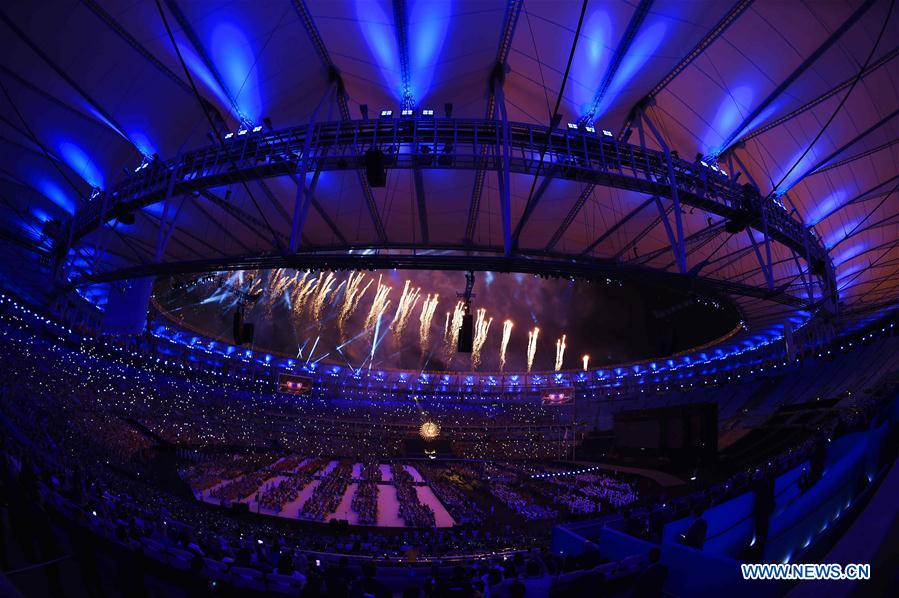 Photo taken on Sept. 18, 2016 shows the fireworks of the closing ceremony of Rio 2016 Paralympic Games at Maracana Stadium in Rio de Janeiro, Brazil. [Photo: Xinhua]