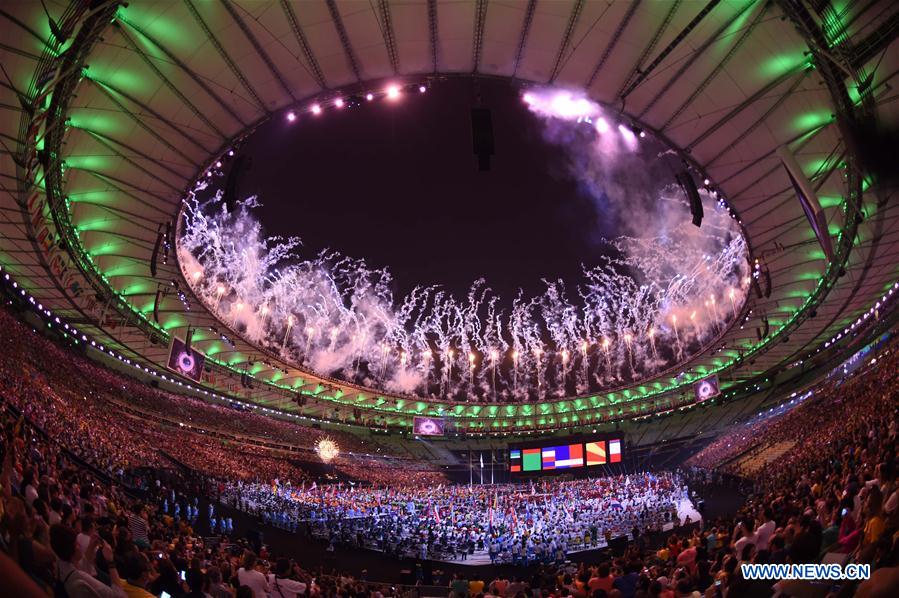 Photo taken on Sept. 18, 2016 shows the fireworks of the closing ceremony of Rio 2016 Paralympic Games at Maracana Stadium in Rio de Janeiro, Brazil. [Photo: Xinhua]