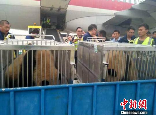 Qiqiao and Qixi, twin giant panda sisters, ready to leave Chengdu. (Chinanews.com/Jin Quan)